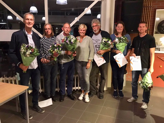 In een soepel verlopen jaarvergadering zijn door het bestuur enkele leden in het zonnetje gezet wegens langdurig lidmaatschap. In een kort, persoonlijk woord vertelde de voorzitter van elke jubilaris wat de verdiensten van dit lid voor de club heeft betekend. Vervolgens werden bloemen, oorkonde en beeldje uitgereikt. Het zijn: