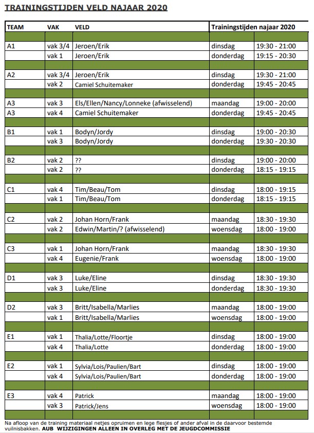 Trainingstijden Veld 2020 25 augustus 202025 augustus 2020 Klik hierbij voor een overzicht van de “Trainingstijden Veld 2020”.