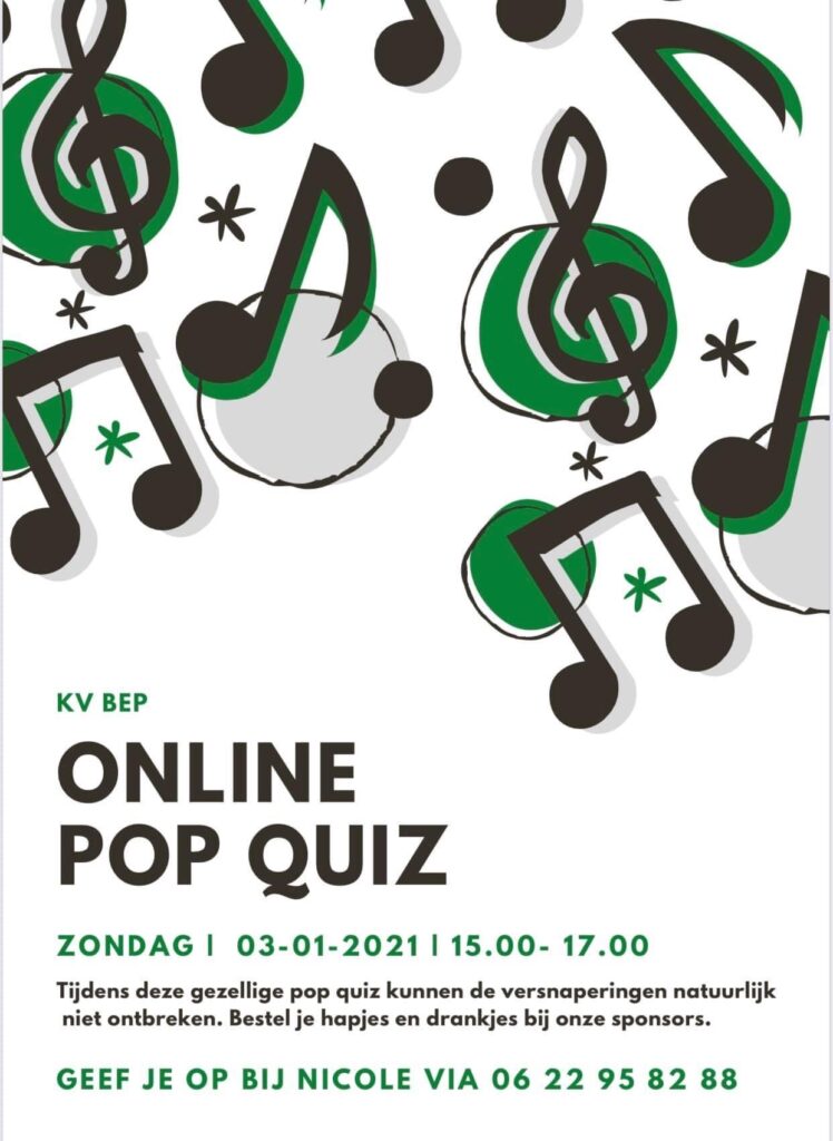Luid het nieuwe jaar in met een “Online Pop quiz”. Speel dan mee op zondag 3 januari 2021, van 15.00 tot 17.00 uur. Ken jij de klassiekers of nieuwste hits? Test je kennis en reken op een gezellige tijd met BEPPERS.