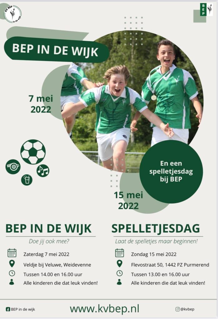 Zondag 15 mei organiseren we van 13.00 uur tot 16.00 uur een spelletjesmiddag bij het clubhuis. Dit is voor kinderen die kennis willen maken met korfbal bij Korfbalvereniging BEP en nog geen lid zijn, maar het is natuurlijk ook voor de jeugdleden uit de F, E, D en C-ploegen. Neem jullie vriendjes en vriendinnetjes mee en maak er een gezellige dag van!