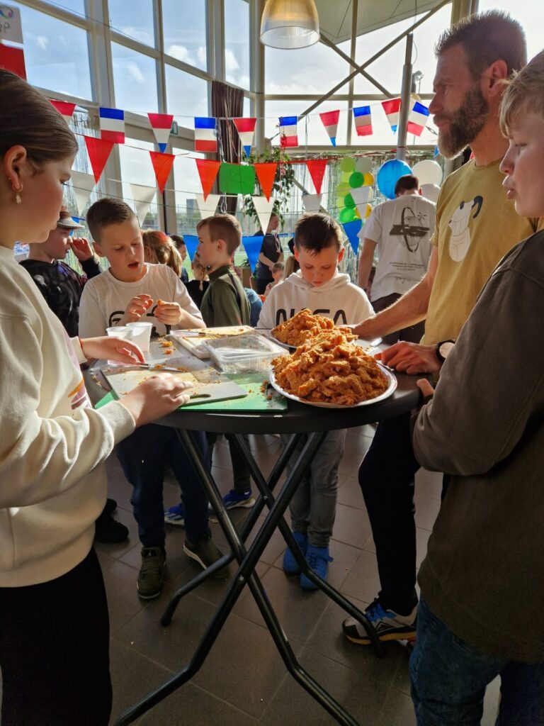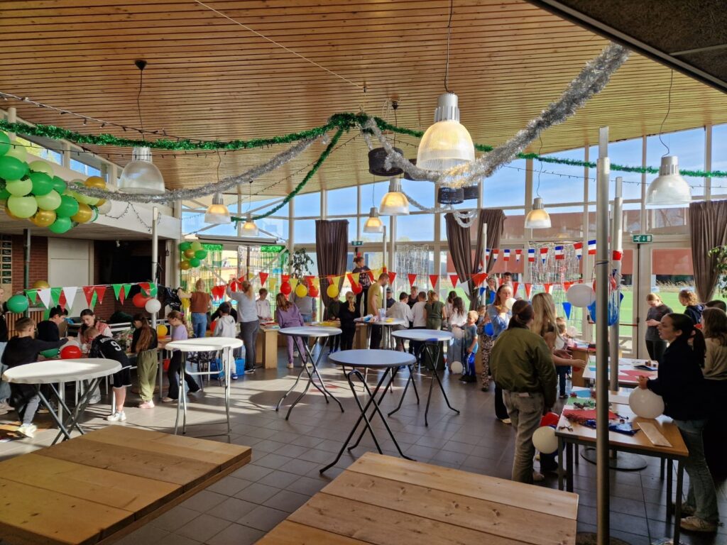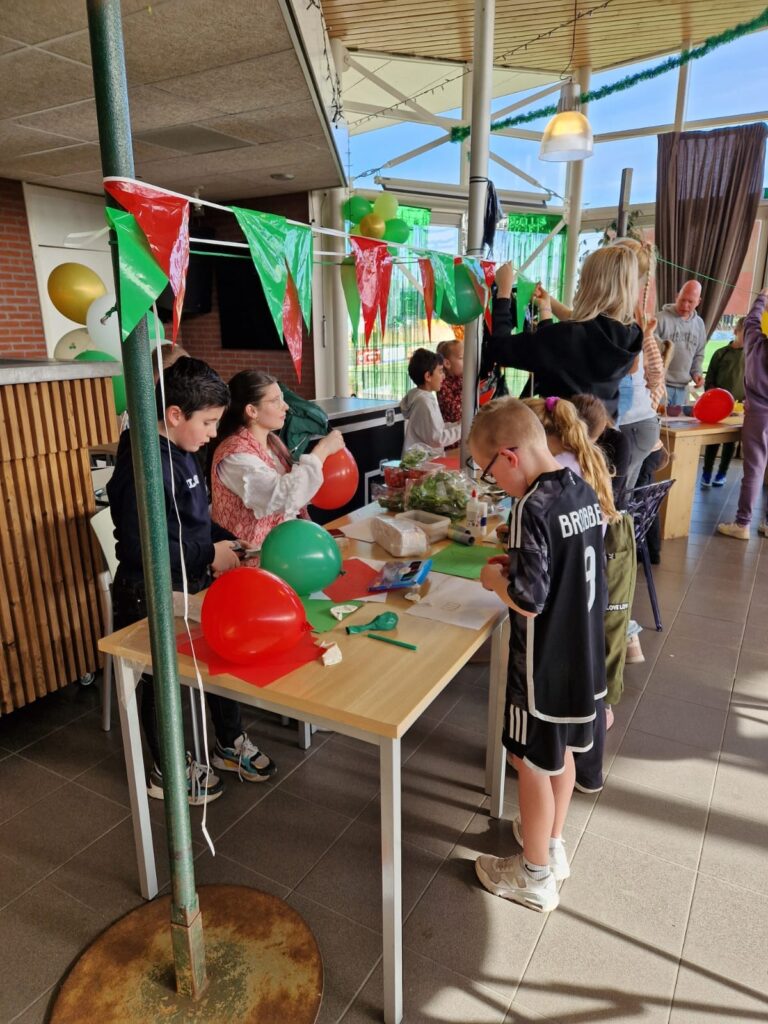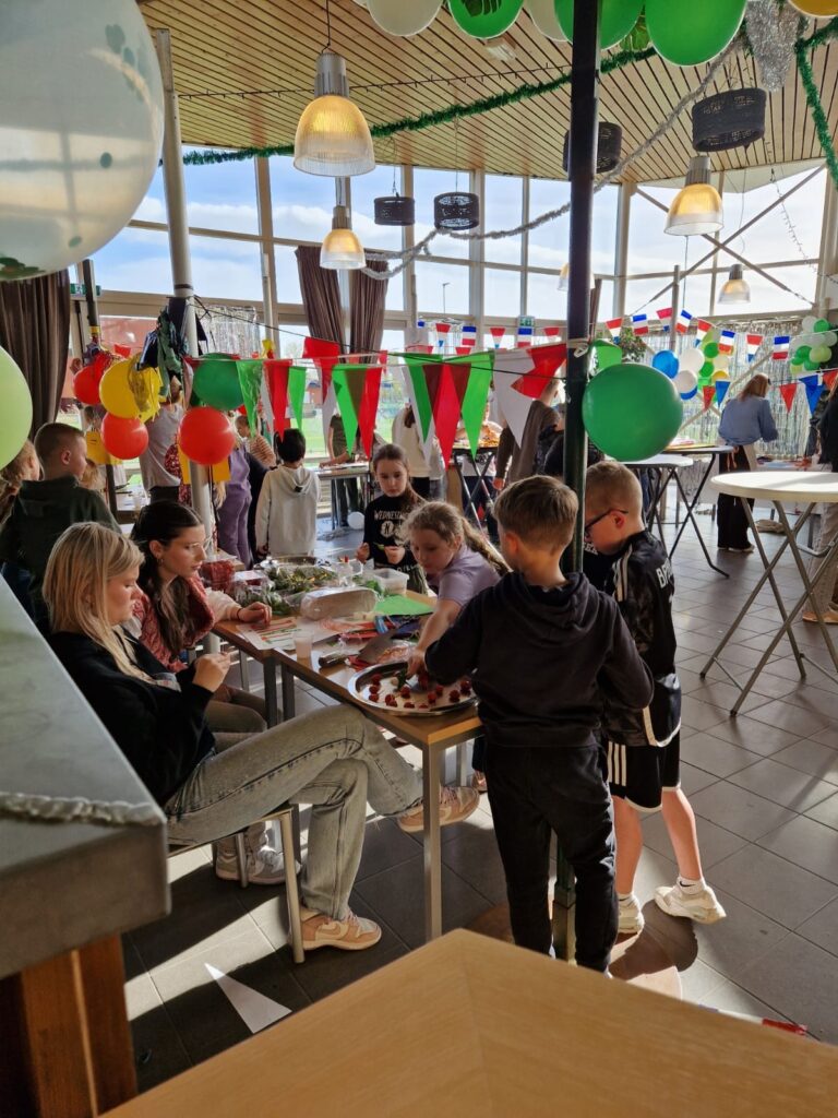 Op vrijdagmiddag 5 april kwamen de jeugdleden van BEP samen in het clubhuis met hun coaches en de FeCo (Feestcommissie) om gezellig te koken en knutselen. In de weken ervoor hadden ze landen en gerechten gekozen. De ingrediënten waren ingeslagen en er was genoeg papier, lijm en scharen. Verschillende landen kwamen bij elkaar: België, Oostenrijk, Mexico, Italië, Frankrijk, Spanje, Amerika en Nederland. Elk team versierde een kraam en maakte gerechten klaar, zoals hotdogs, mozzarella met tomaatjes, poffertjes, schnitzel met patat, empanadas, flensjes en wafels. Het was een flinke klus om alles op tijd af te krijgen, want om 19.00 uur zouden de ouders komen. Maar het lukte! Op het drukste moment waren er meer dan 150 ouders en jeugdleden van BEP aanwezig. Ze genoten samen van de gezellige sfeer in het clubhuis, dat was omgetoverd tot een levendige ‘Foodmarkt’. Het evenement was een groot succes dankzij de inzet van de kunstenaars, chef-koks en vrijwilligers van BEP!