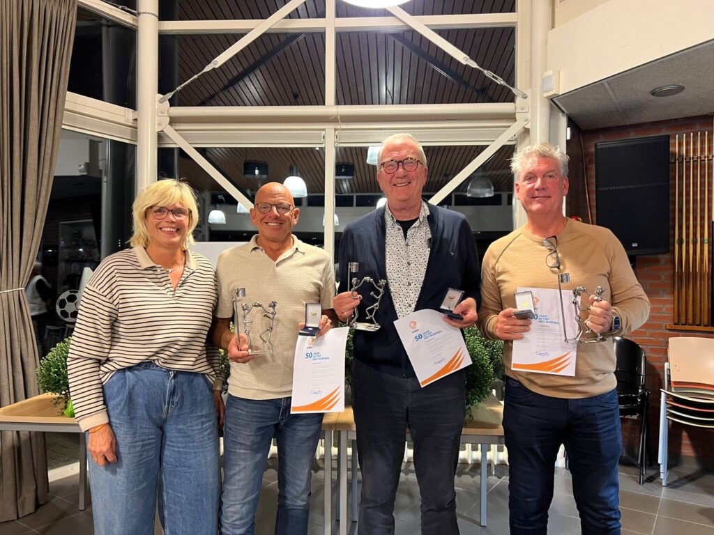 We vierden wat af gisteren. Verschillende leden werden in het zonnetje gezet met bloemen, een speld en sommigen ook met een beeld.