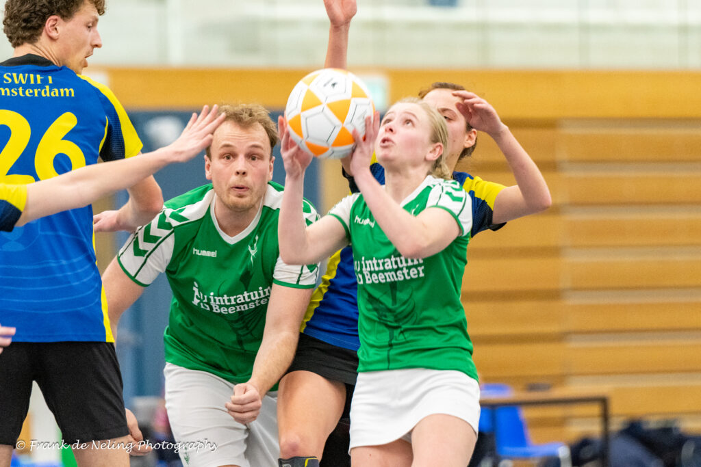 Na 3 weken er tussenuit te zijn geweest, was het dit weekend tijd om de competitie te hervatten. Na wat welverdiende rust, tijd met familie en lekker eten was iedereen weer opgeladen om het 2e deel van het zaalseizoen te knallen. We sloten vorig jaar goed af met een overwinning op Pernix waardoor we bovenaan stonden. Dit weekend was de laatste wedstrijd voor de returns en we mochten starten tegen Swift uit Amsterdam. Zij staan op de 5e plaats in de poule en laten wat wisselende resultaten zien. Gelijk tegen de onderste maar wel weer winst tegen Fiducia.