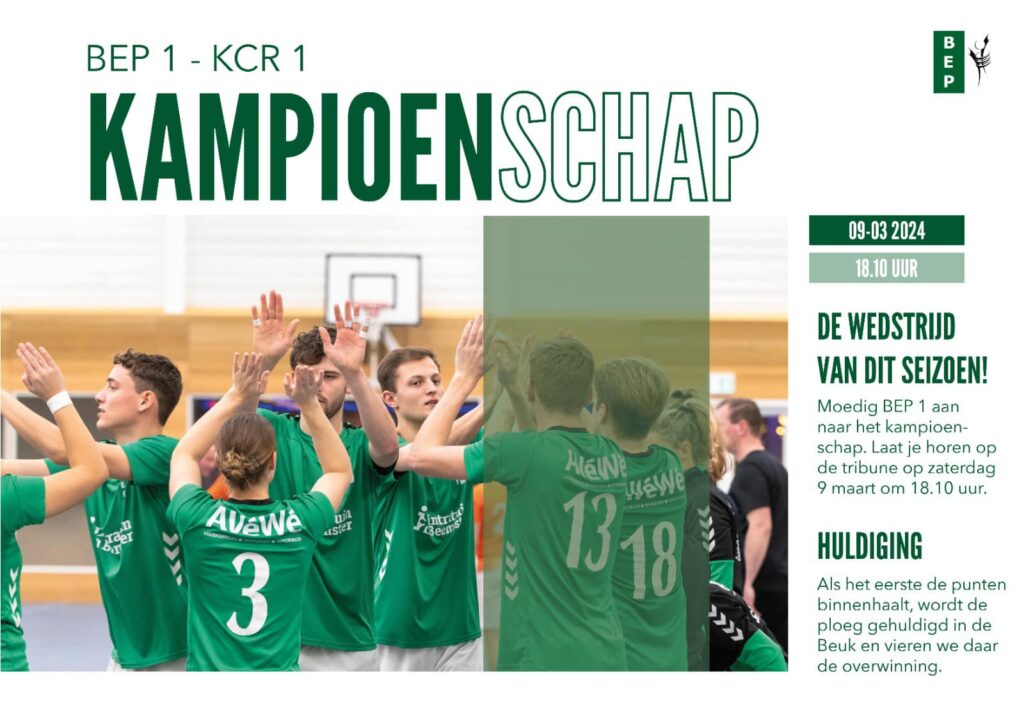 "Kampioenswedstrijd BEP 1 zaterdag!"Lees verder